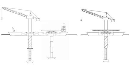 The patent family includes a number of related spin-off variations. These include a combined crane and motion resistant deck supply / installation vessel, an all-in-one crane and component support deck. There is also a Telescopic Spar floating wind turbine foundation, and a specialist deployment vessel for these foundations with their turbines pre-installed.