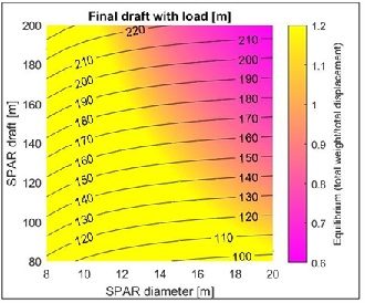 The concept is fully scalable, as the weight and lifting height is dictated by the diameter and draft of the Spar element. The current development is centred around a next generation, deep water, floating wind farm maintenance vessel. This vessel would be able to maintain wind turbines up to 20MW, with a single lift capacity of around 1,000t, to a height of 160m and a reach of 50m. It would operate in water depths greater than 80m.