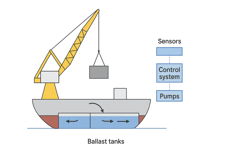 Unlike the smaller hydraulic motion compensating cranes and the larger monohull water ballasted crane vessels, the concept's crane Spar platform, once deployed, would not be reliant on dynamic ballasting. There may be a trim adjustment required, depending on the load being lifted, but if a there was a sudden loss of load from the hook, the Spar would absorb the shock and the vessel would be unaffected.